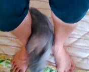 母も足首にお嬢様の「やわらかい毛」が触れると、